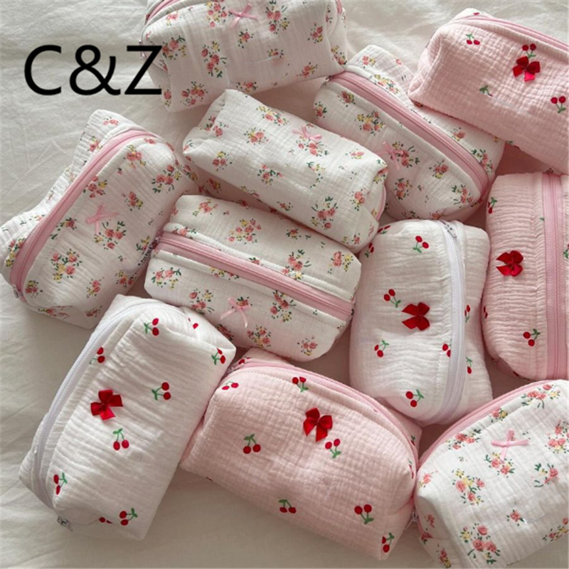 泡泡綿小さくらんぼプリント化粧バッグかわいい大容量砕花洗面バッグ携帯スキンケア品収納袋