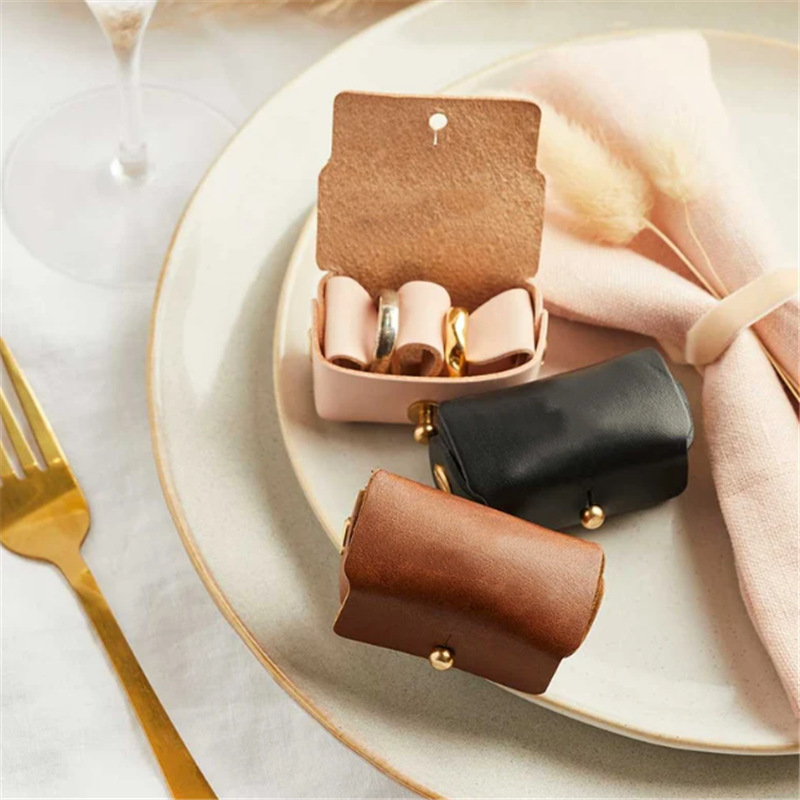 革の指輪の収納袋の立体的な2つの結婚式の指輪の収納箱の携帯用アクセサリーの箱
