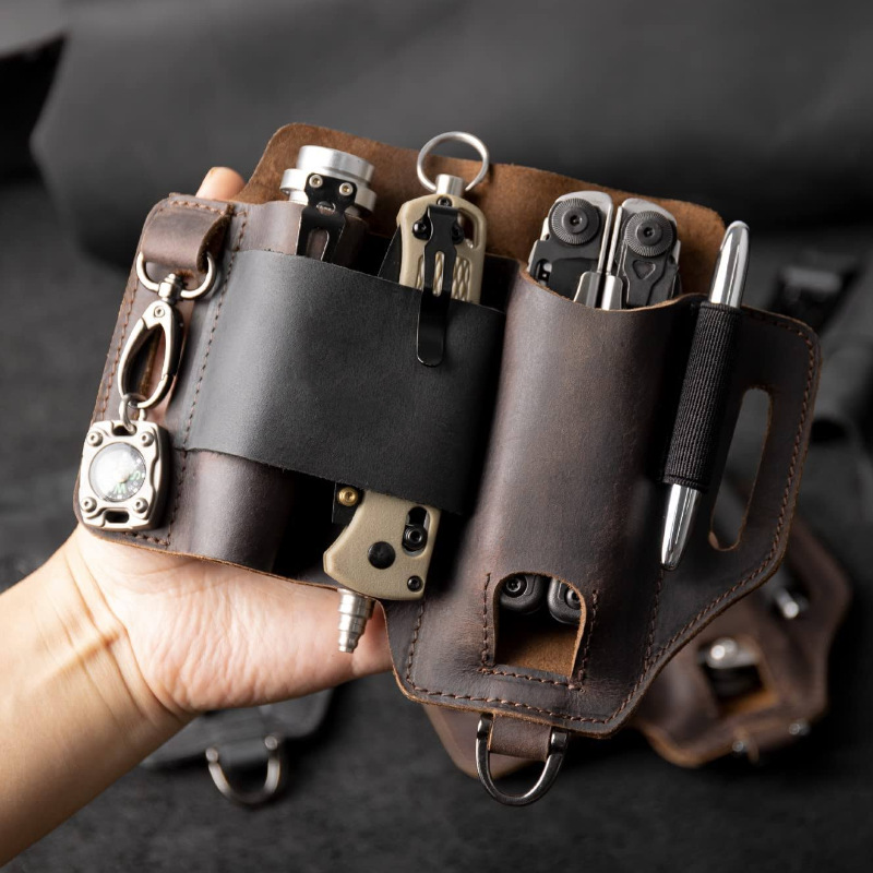 クロスボーダーの人気牛革ツールウエストバッグ屋外防身edcツール保護カバー多機能懐中電灯カバー