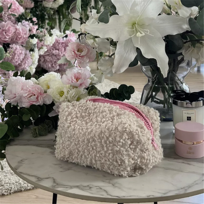 可爱いテディパイル巻き毛ポーチ携帯大容量ペンポーチソフトモチ収纳洗面ポーチポーチ