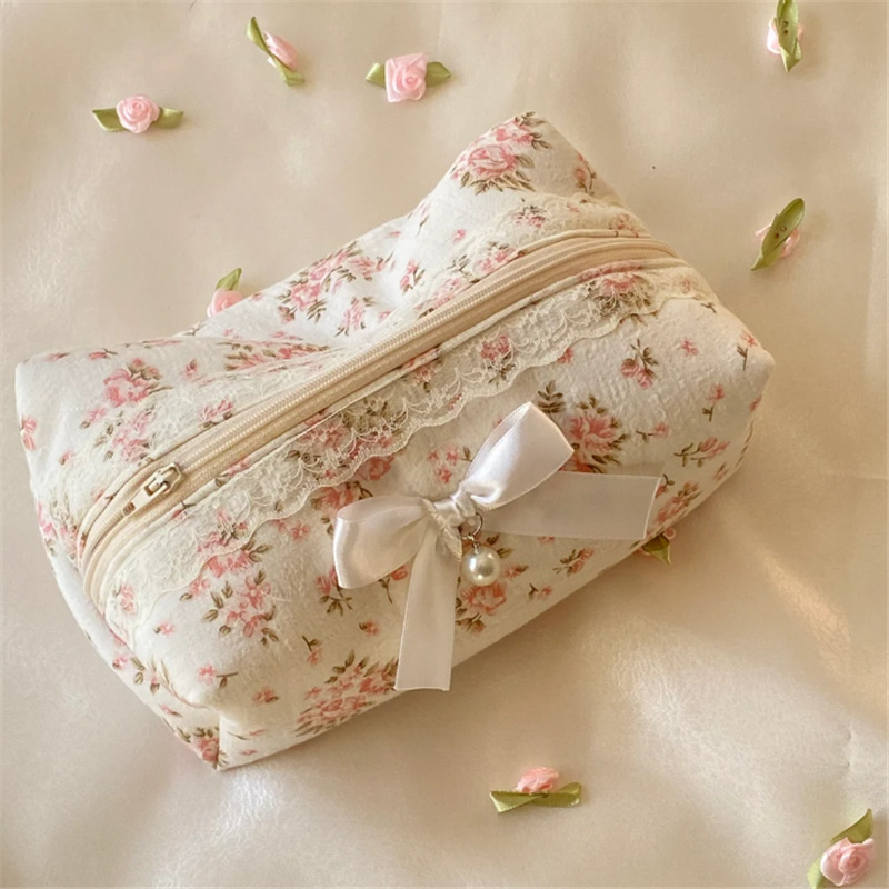 現物ピンクの花の女性の化粧袋の蝶結びの花の収納袋の甘い女子学生のスキンケアの収納袋