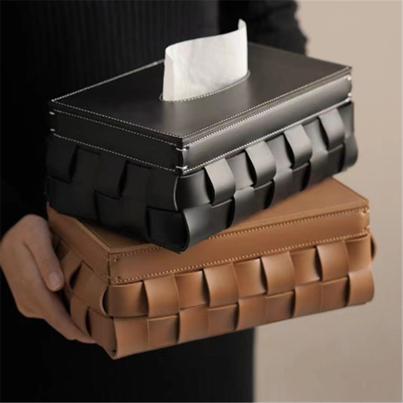 現代の軽くて豪華な高級感はティッシュの箱のデスクトップのリビングのナプキンの箱の皮革を編んで紙の箱の家庭用の置物を引き出します。