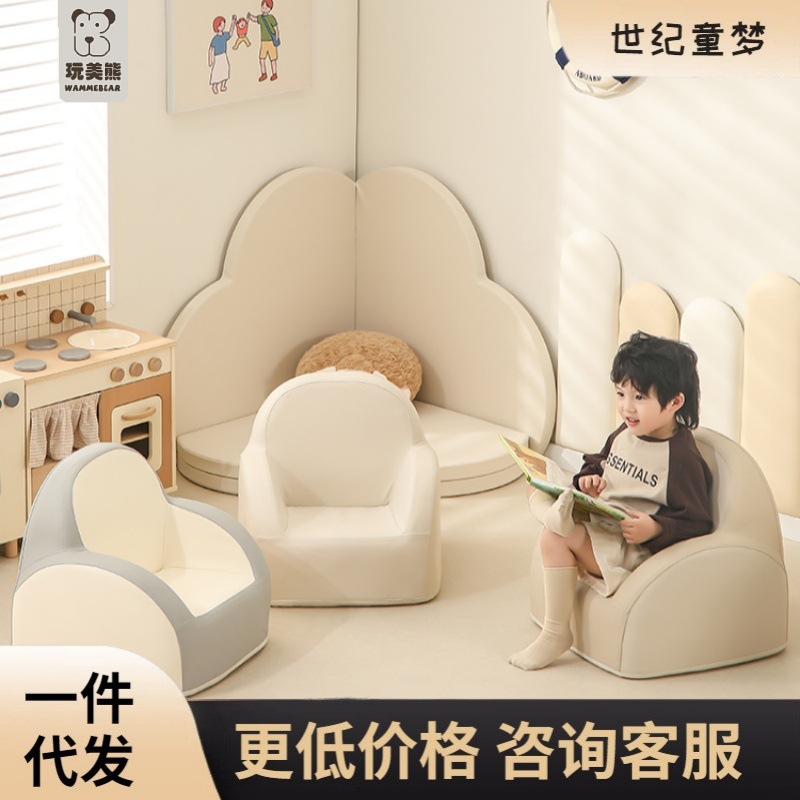 美しい熊の子供の小さいソファーの赤ちゃんを遊んでかわいいです。