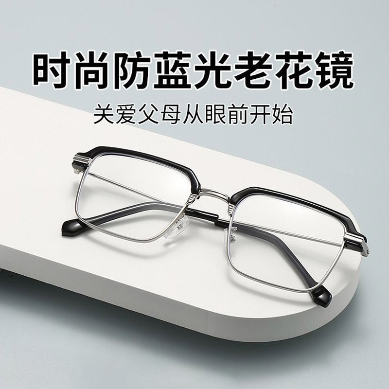 新しいビジネスメンズハイエンドハーフフレーム眉毛老眼鏡中高年ファッション目の保護抗青色光老眼鏡
