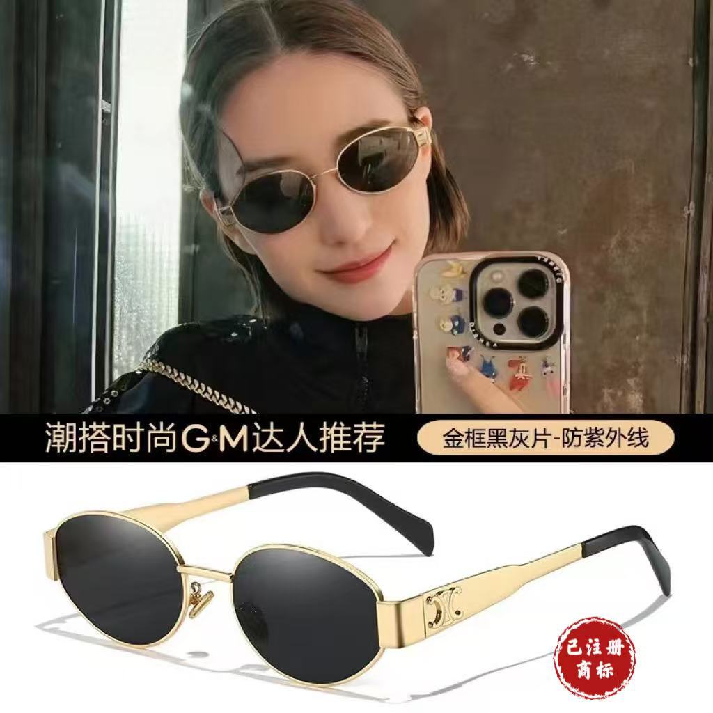 楕円金属サングラス凱旋門ネット赤サングラス夏トレンド街撮影防紫外サングラス