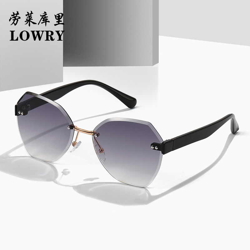 2022新型縁なしエッジ不規則レトロファッションファッションサングラス女性の顔が痩せて見える個性サングラス