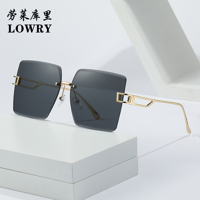 2022新品レトロフレームレス大角型金属グラデーション茶色高級質感ファッション紫外線防止サングラス