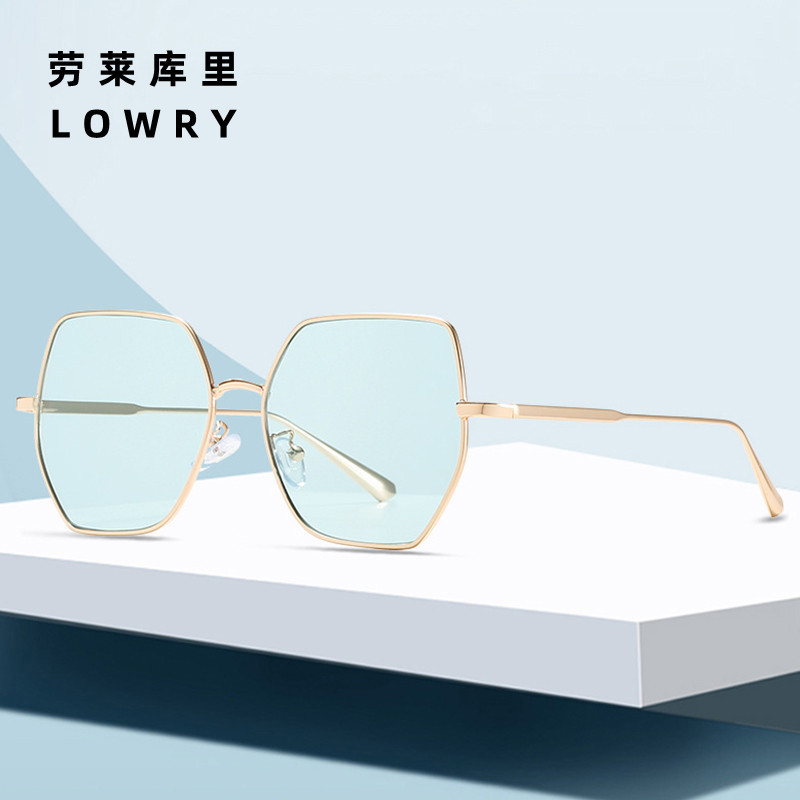 新型牛油果緑片ins風高級顕痩せ金属枠ネット赤同金9173紫外線防止サングラス