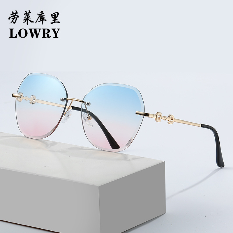 2022新型欧米のファッション紫外線防止グラデーションフレーム縁なし金属フレームサングラス