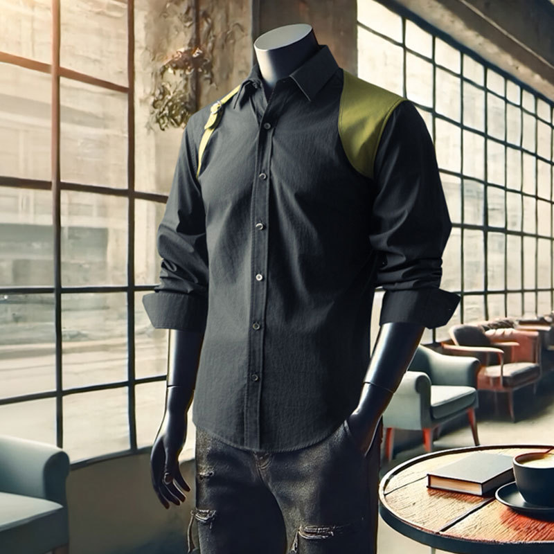 JH俊鴻2025早春新長袖衝突色シャツファッションゆるいカジュアルシャツ