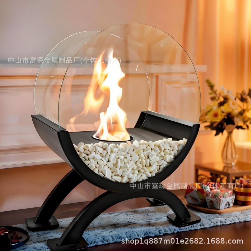 クロスボーダーデスクトップアルコール暖炉エタノールリアルファイヤー暖炉家庭用ラウンド暖炉小型便利なデスクトップ暖炉