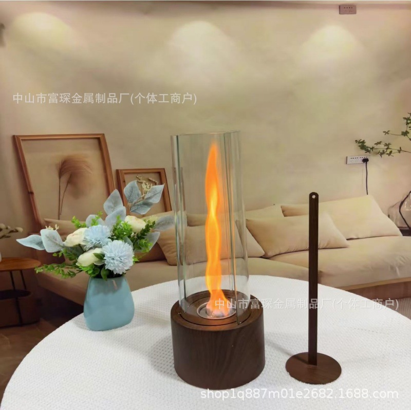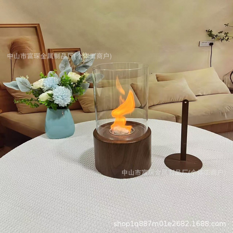 クロスボーダーデスクトップアルコール暖炉木目クラフトサイクロン高いガラス竜巻炎装飾暖炉暖房暖炉