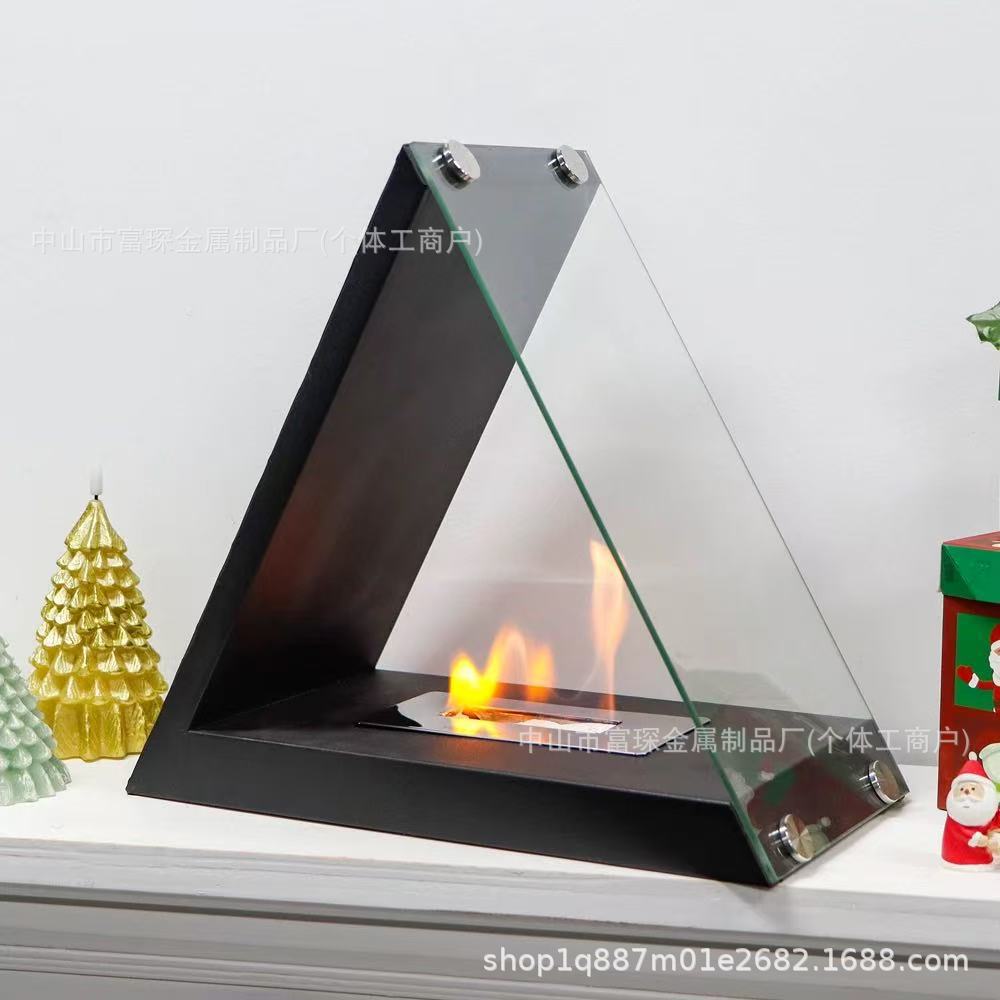 アマゾンの人気新型立体三角形耐熱耐クラックデスクトップアルコール暖炉室内無煙装飾暖炉