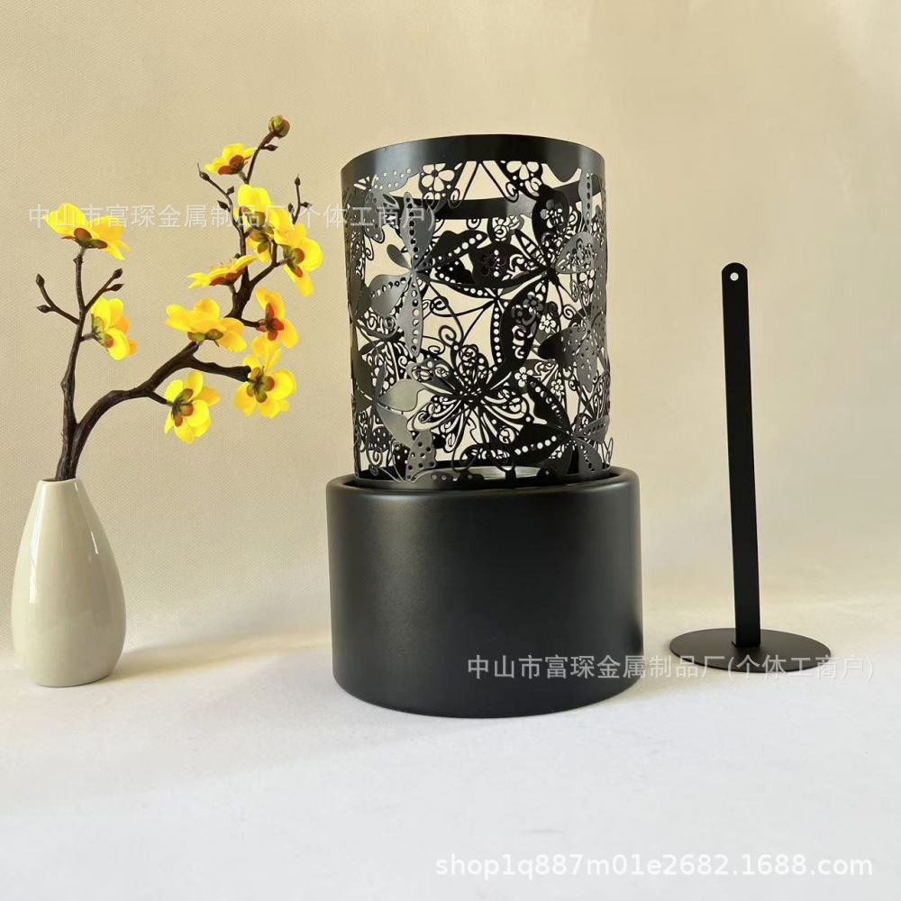 新しいデスクトップ暖炉円形DIY鉄芸透かし彫り蝶アルコール暖炉室内外真火ストーブ