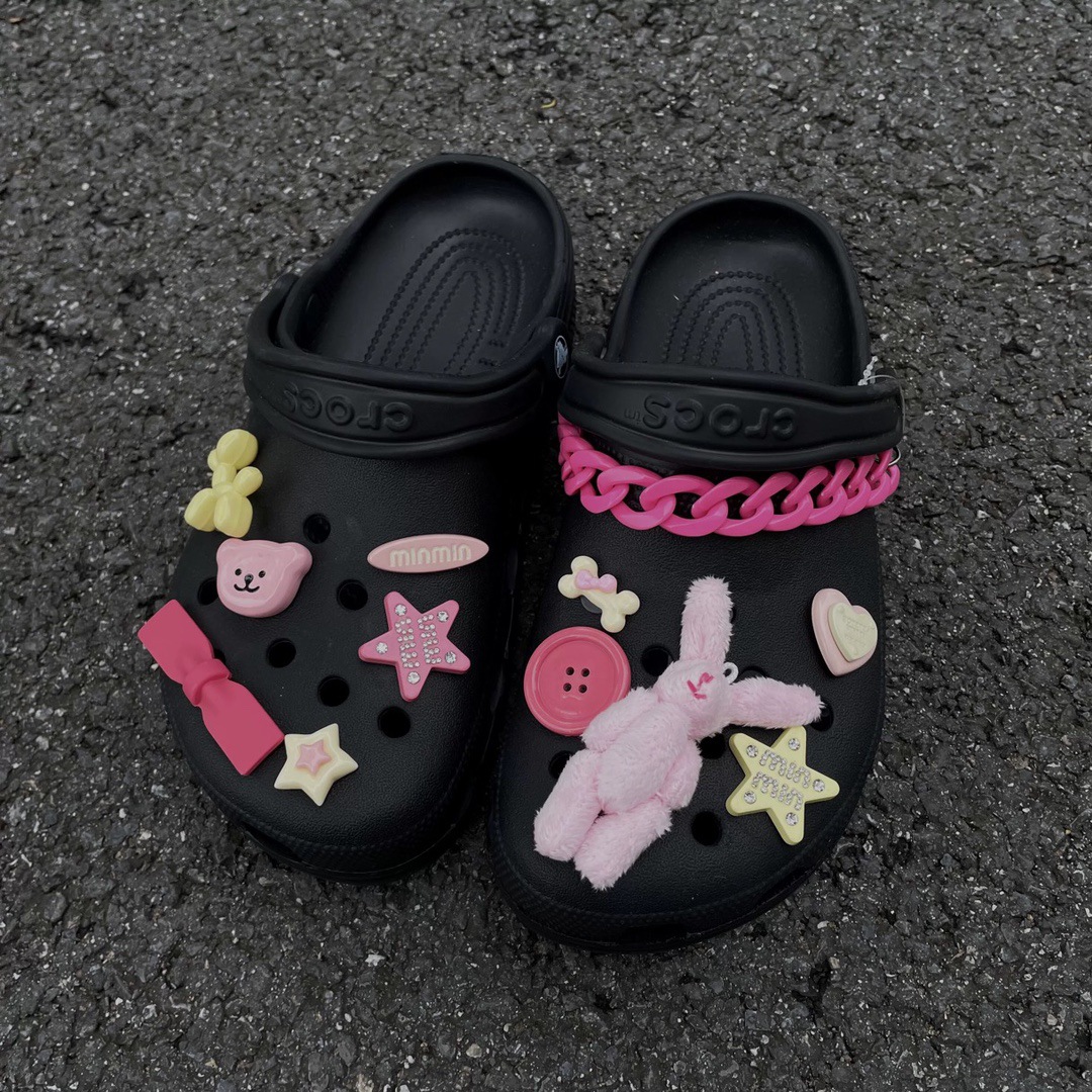 小紅書ドーパミン青系五角星熊アクセサリー洞靴セットdiy靴花卸売り