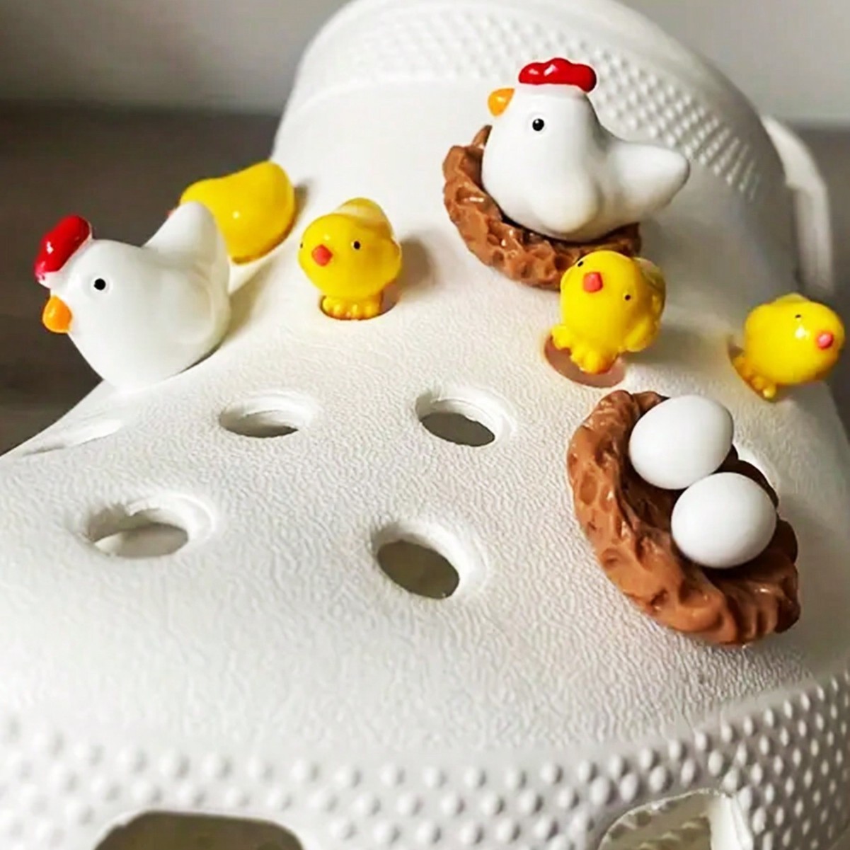 越境してよく売れている3d小さい黄色の鶏の雌鶏の卵の鶏の巣の穴の靴は樹脂の靴の花の靴の上で装飾品の靴のボタンを飾ります。