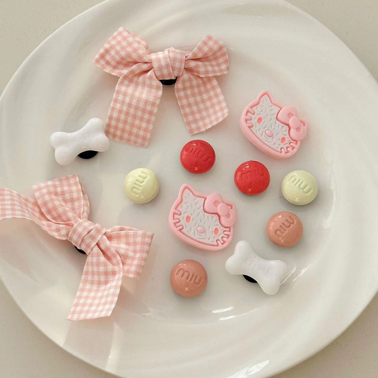 ピンクのハローキティのアクセサリーの穴の靴DIYの靴の花のかわいい漫画の蝶結びの穴の靴のボタン