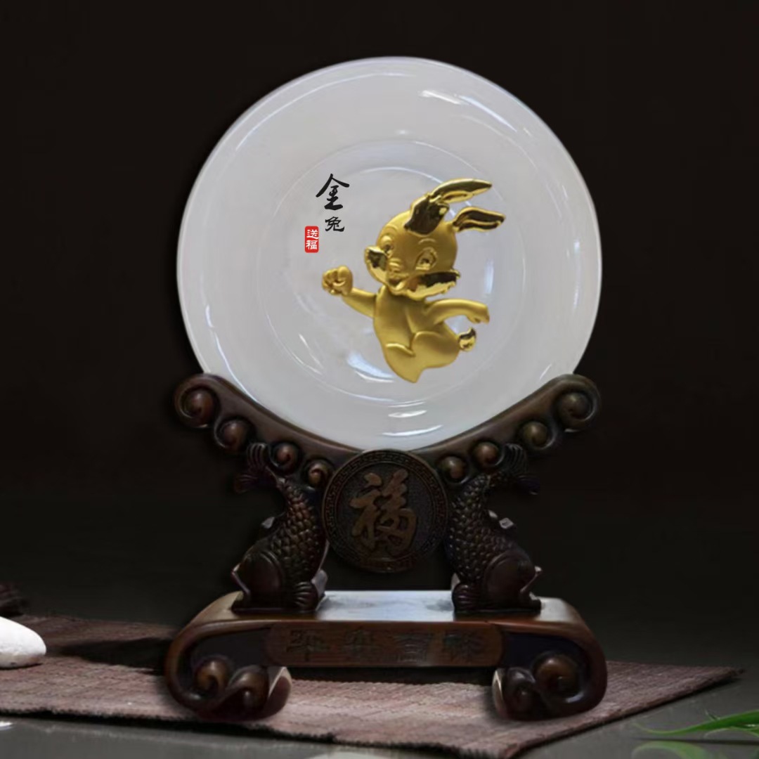 玉盤金兎送福賀歳新年礼品十二生肖兎年置物銀行保険開門紅礼品