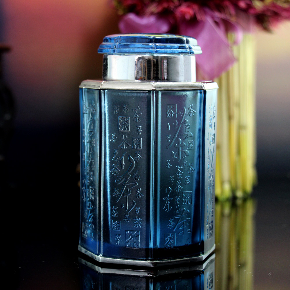 八角形茶葉缶茶葉缶瑠璃缶瑠璃茶葉缶周年祝典校慶茶葉缶茶道具茶包装
