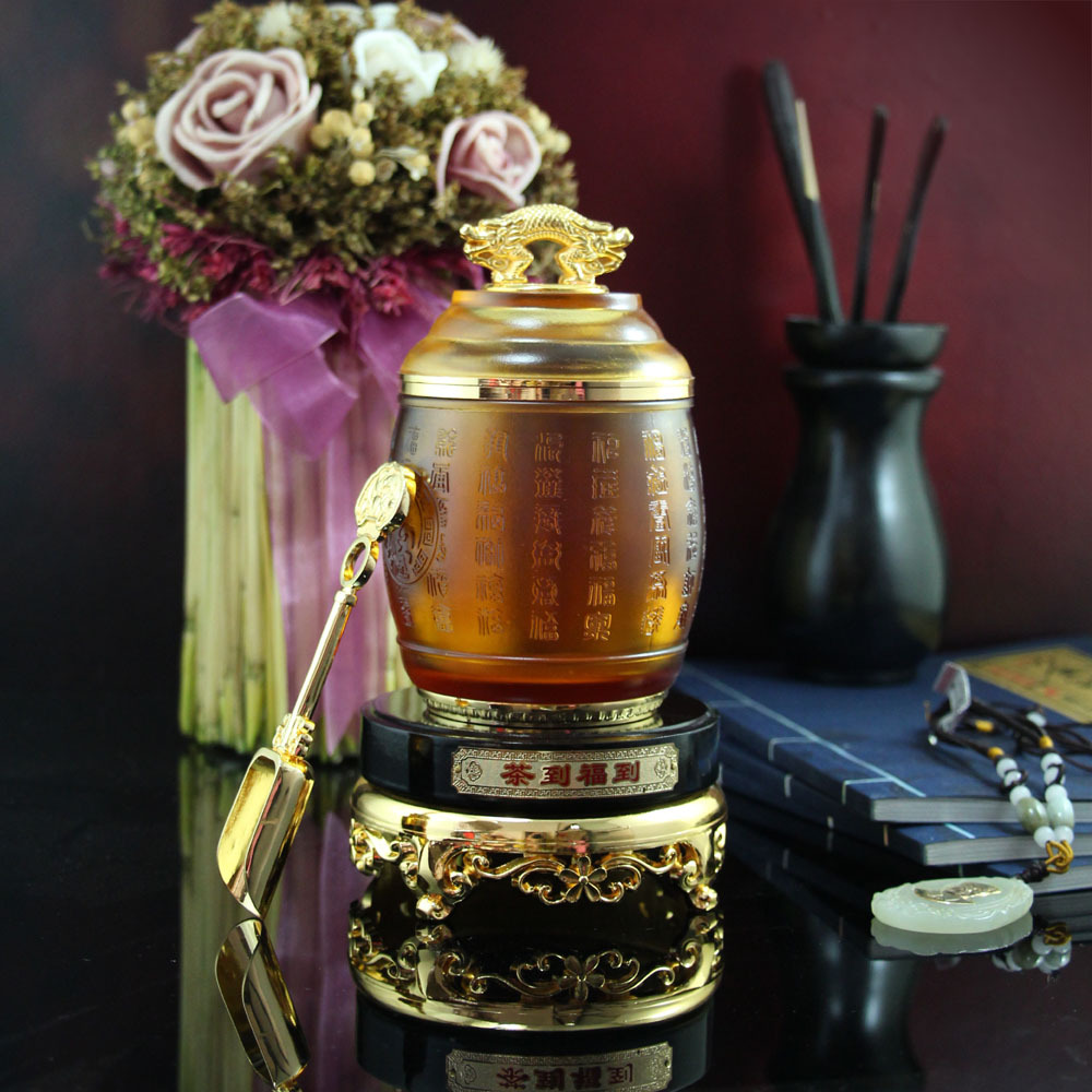 栄華富貴茶葉缶瑠璃茶葉缶瑠璃校慶礼品開業祝典茶葉缶瑠璃玉茶缶