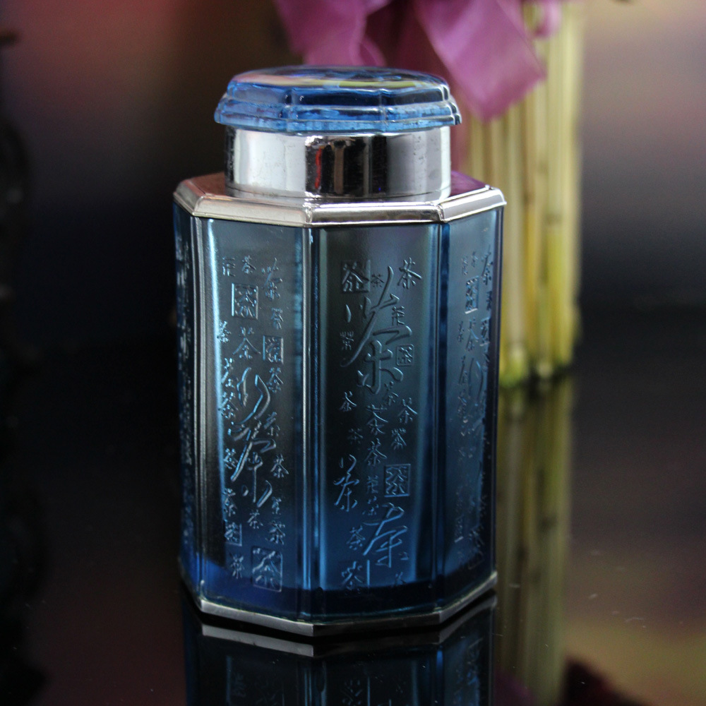 青い瑠璃八角茶葉缶瑠璃百福茶から福へ茶葉缶開業祝典校慶芸術工芸