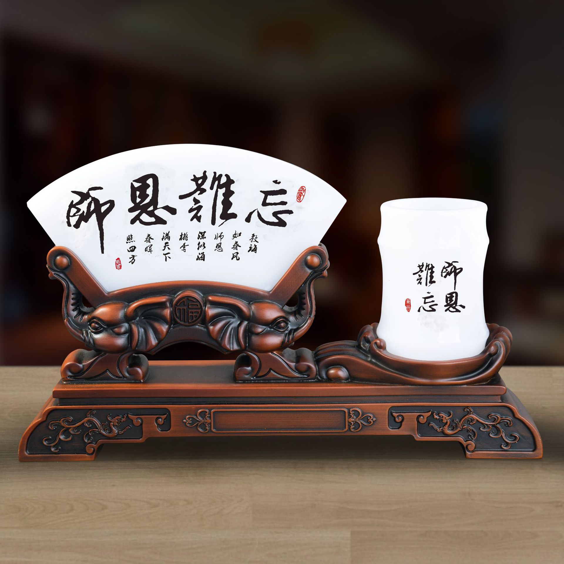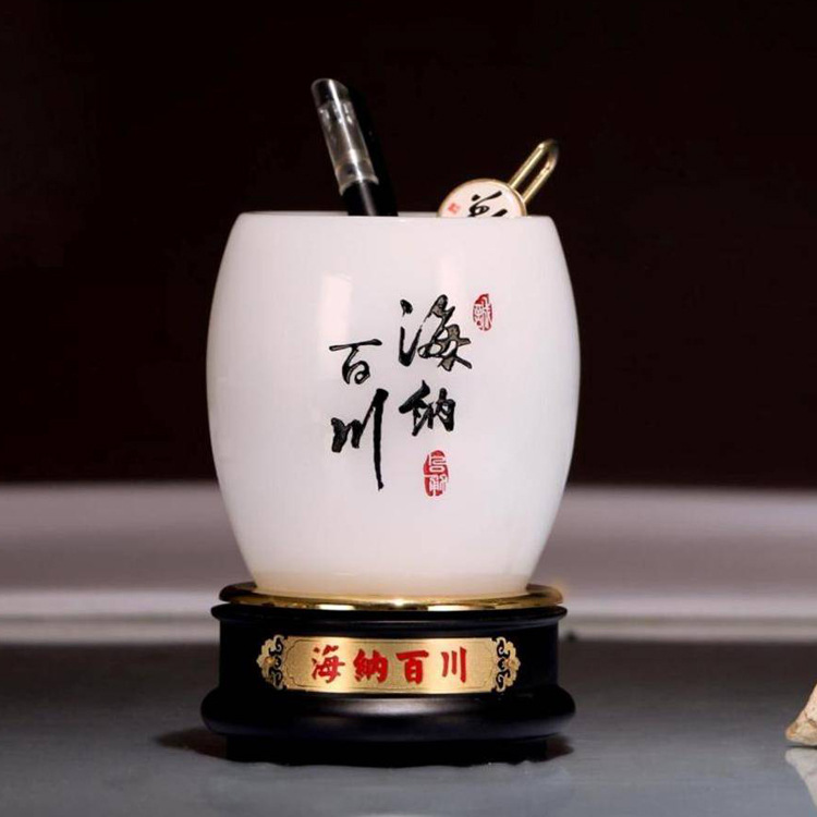 海納百川師恩忘れられない瑠璃玉筆筒は先生の同窓会の筆筒にプレゼントします。