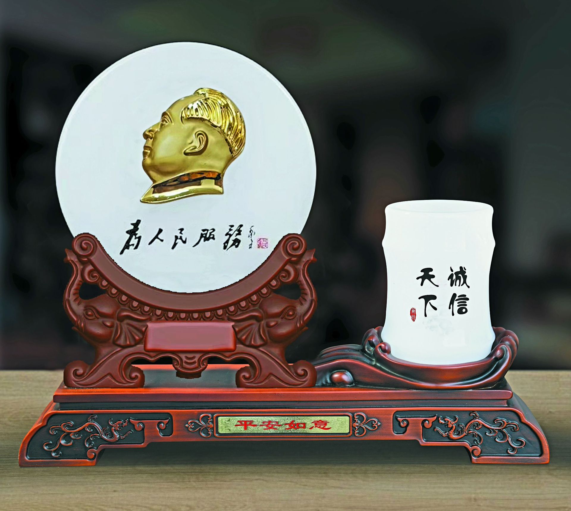 エナメル彩瑠璃玉聚宝盤オフィス置物工芸品瑠璃玉水筒会社従業員表彰授賞