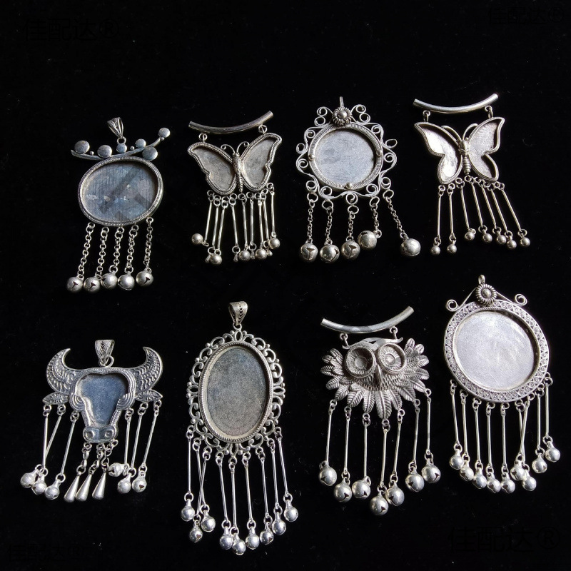 エスニックスタイル模造古いシルバーミャオ族シルバーネックレス diy ペンダントアクセサリーペンダント空ベースモールド象嵌古い刺繍ペンダント