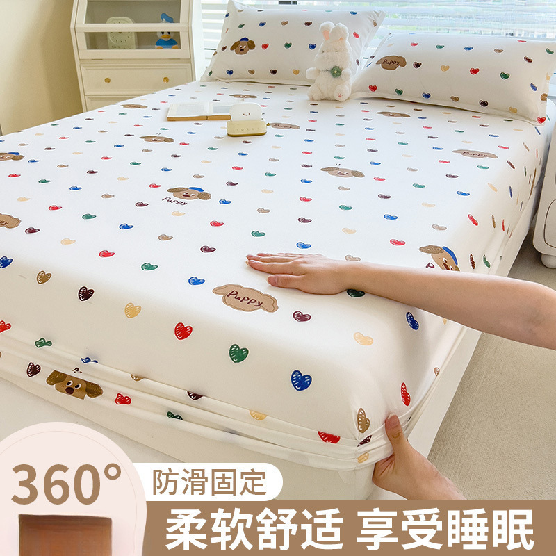 夏用裸寝プリントベッドシーツ、オールインクルーシブ滑り止め洗濯機洗い可能なベッドシーツ、マットレス防塵保護カバー、春と秋の厚みのあるベッドシーツ