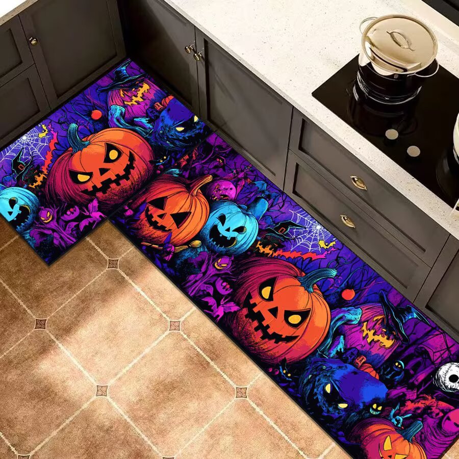 クロスボーダーハロウィンフロアマットカスタムゴールデンダイヤモンドベルベット秋カボチャフロアマット吸水性滑り止め玄関ドアキッチンフロアマット