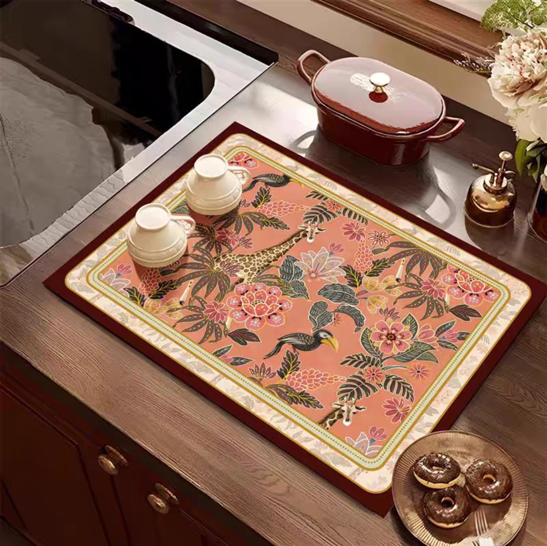 カスタマイズ可能なサイズのコーヒーマシン吸収性テーブルマット珪藻泥バーキッチン排水マット滑り止め断熱マット