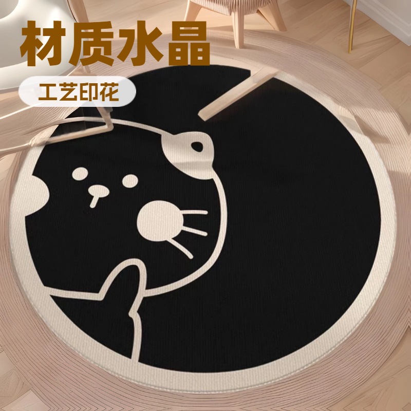 漫画風猫柄丸型ホームリビングマット、寝室用滑り止めコンピュータ回転椅子マット、滑り止めクリスタルベルベットカーペット
