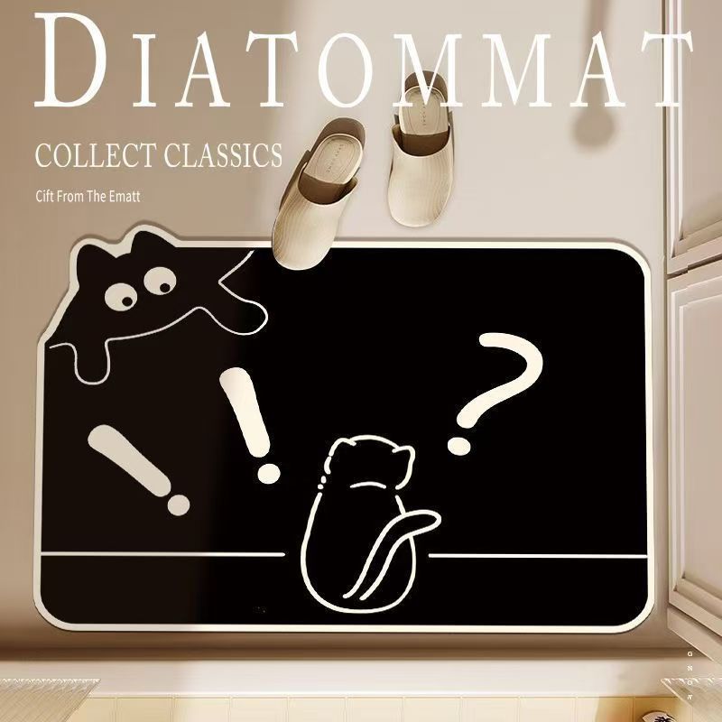 漫画猫珪藻泥浴室吸収性フロアマット浴室足マットホームノンスリップかわいいカーペット玄関ドア