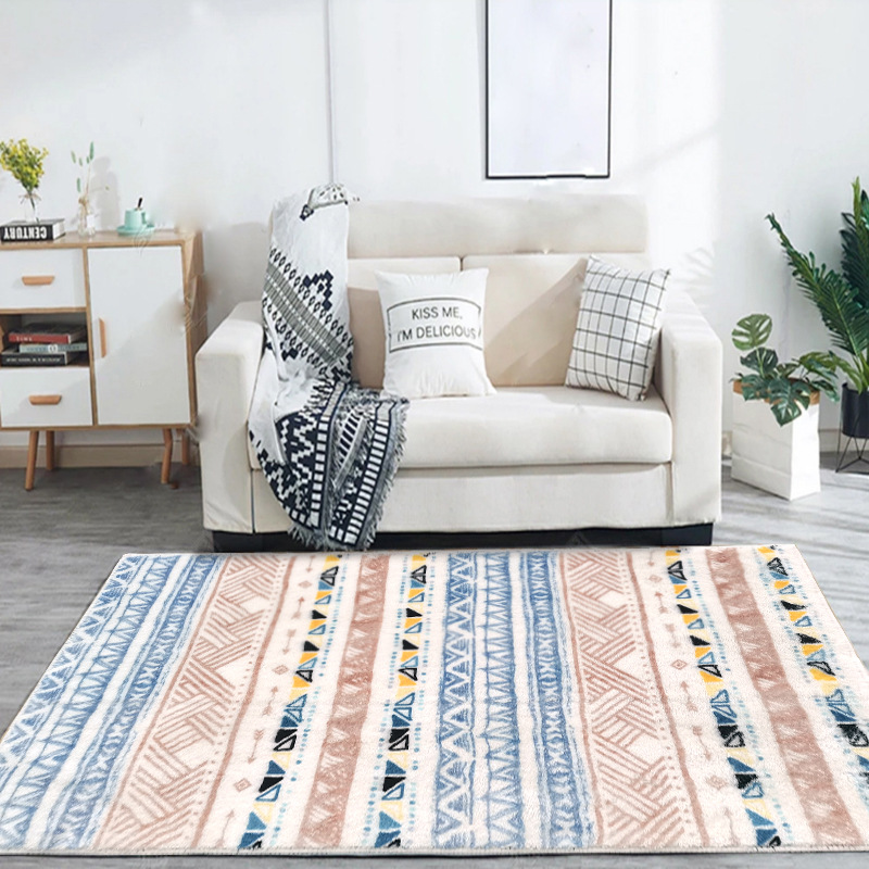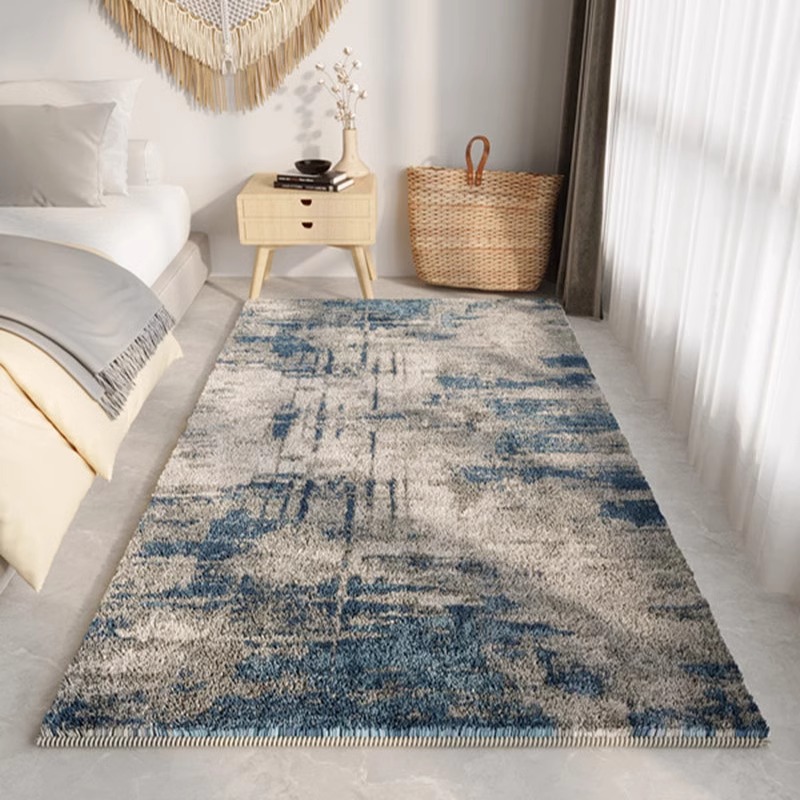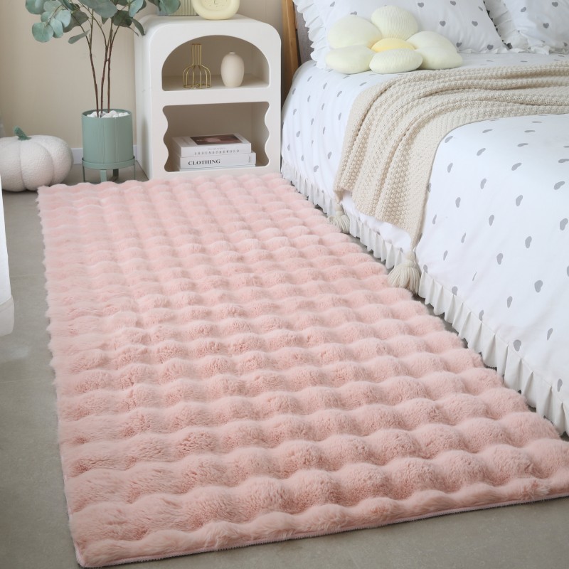 カスタマイズ可能なイミテーションカシミヤ寝室用ベッドサイドブランケット、ルームプリント、汚れに強い、シンプルでフレッシュな家庭用フリースフロアマット、ロングカーペット