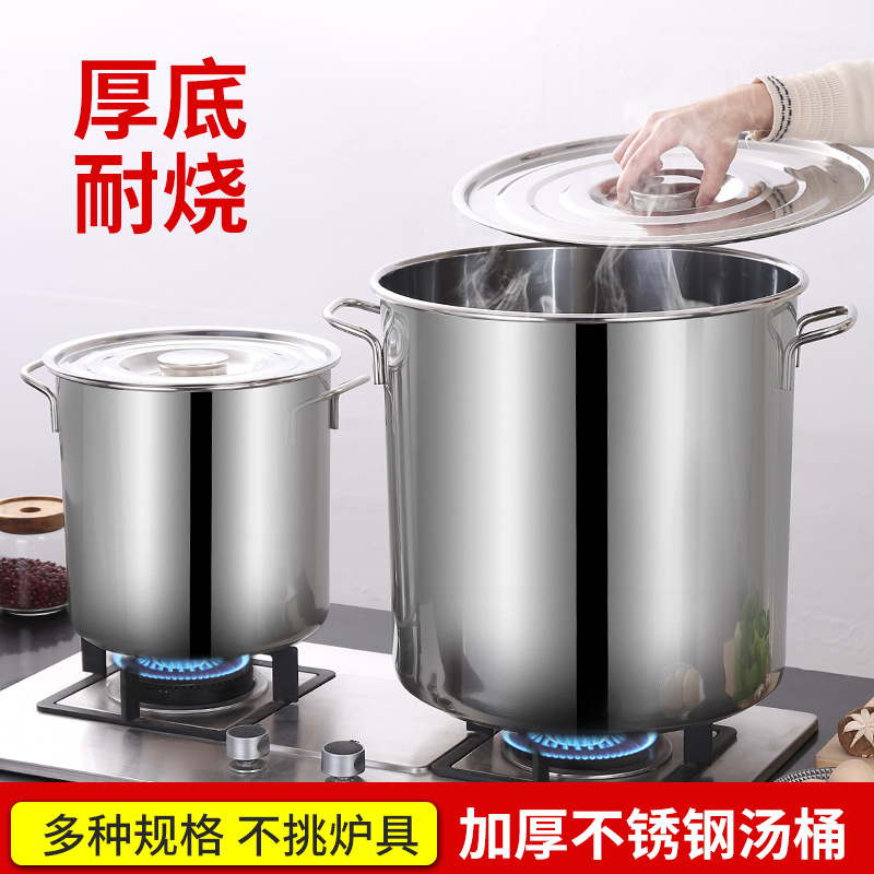 ステンレスのスープの桶の業務用蓋付きのステンレスの桶の厚い丸い桶の大容量の油の米の桶のハロゲンのバケツの家庭用のスープの鍋