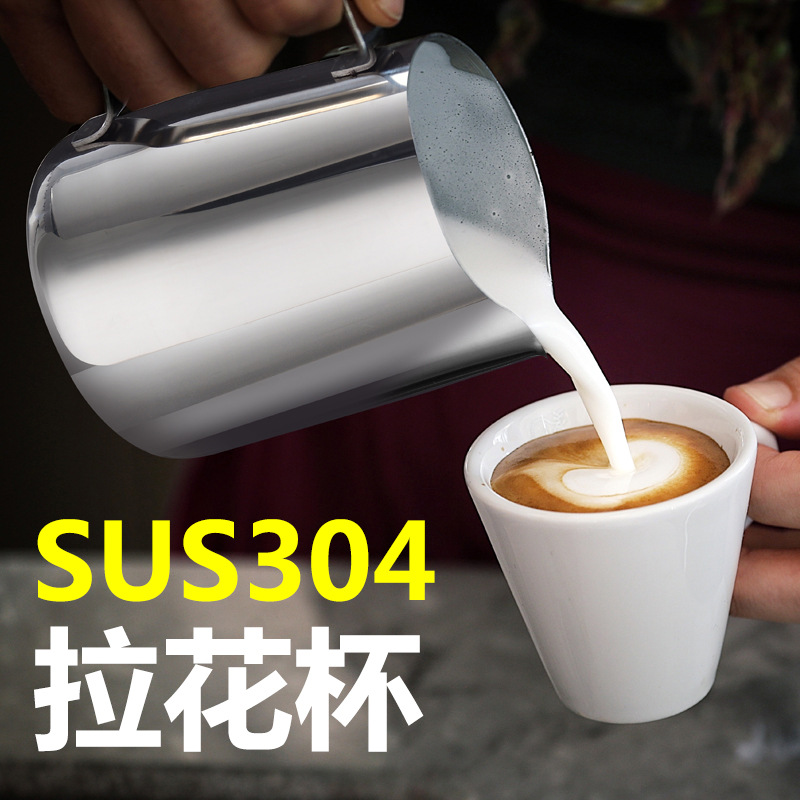 304不锈钢尖嘴拉花杯带刻度加厚拉花缸花式咖啡卡布奇诺打奶泡杯