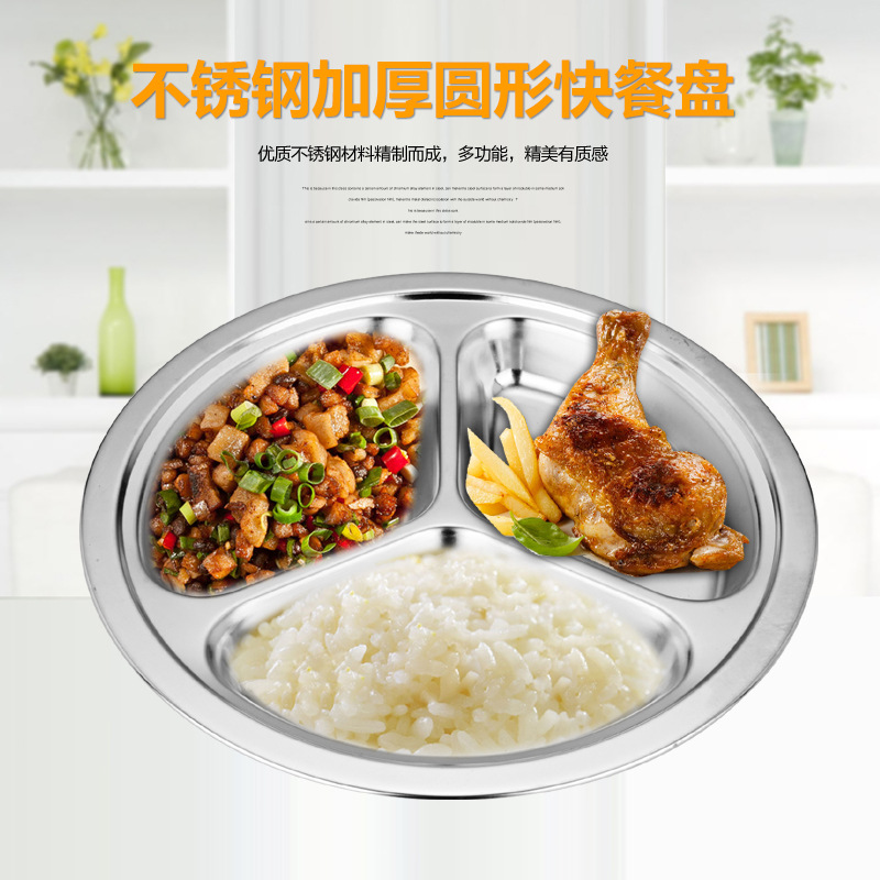 特厚円形ステンレスファストフード盤三四五六格ホテルバイキング学校工場食堂適用