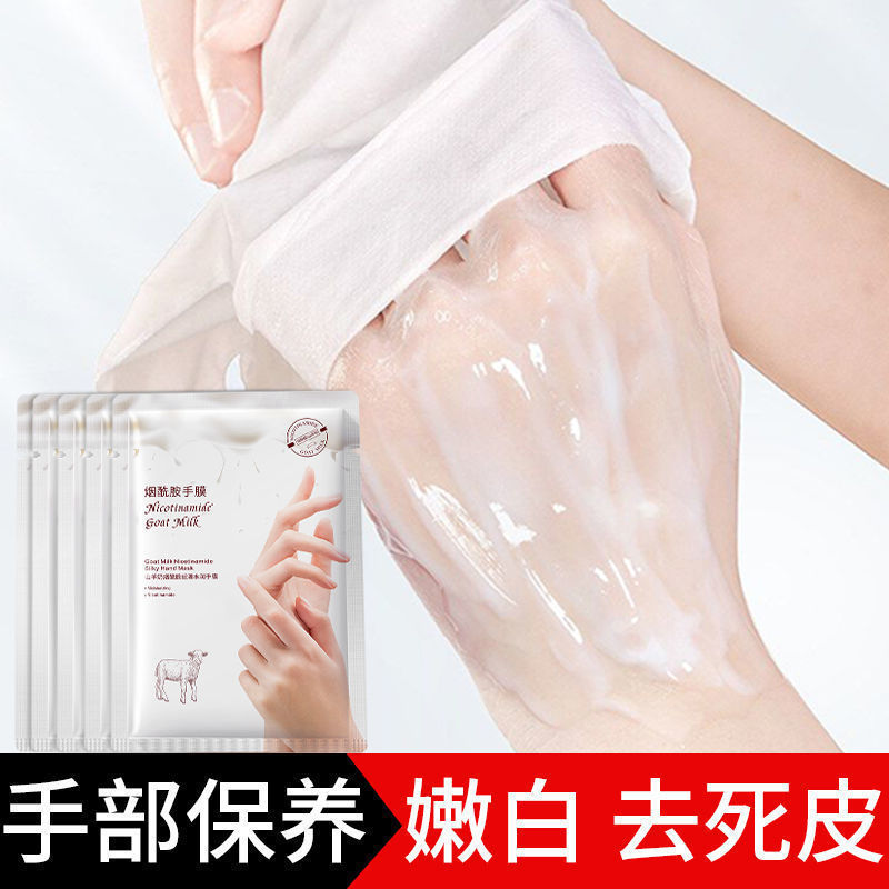 ヤギミルク ナイアシンアミド ハンドマスク 保湿、美白、水分補給、ひび割れ防止、しわ、粗い乾燥、足マスク、小じわの除去、角質除去