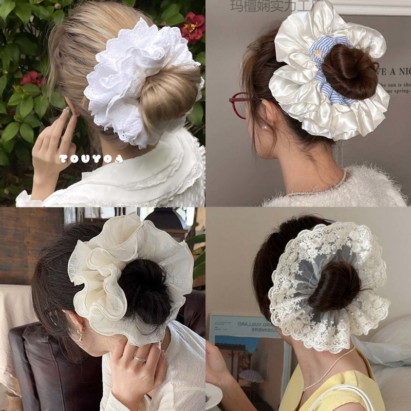人気の特大4層フレンチレトロホワイトレースヘアゴム、高級大腸ヘアゴム、女性用ヘッドウェア