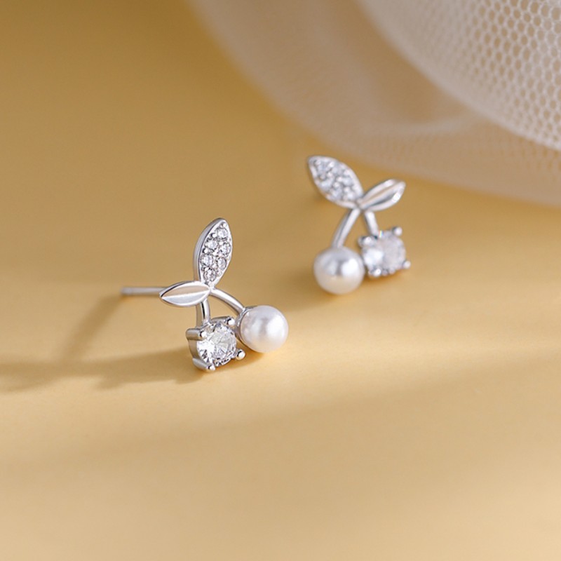 喜飾銀匠925純銀さくらんぼピアス2025新型爆金小衆高級感真珠イヤリング女性代発