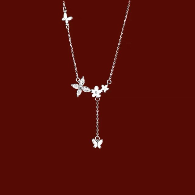喜飾銀匠925純銀小衆甘いデザイン蝶花ネックレス女森系流蘇気質鎖骨鎖
