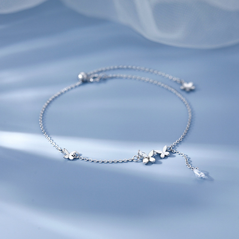 喜飾銀匠925純銀蝶足鎖女小衆ファッション軽豪華百合甘冷淡風足鎖代発