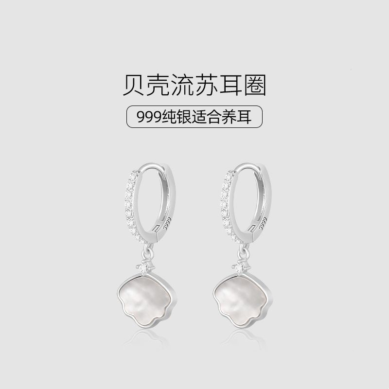 喜飾銀匠999純銀イヤリング女性欧米高級感貝殻流蘇耳ペンダント軽贅沢ファッション耳ボタン代発