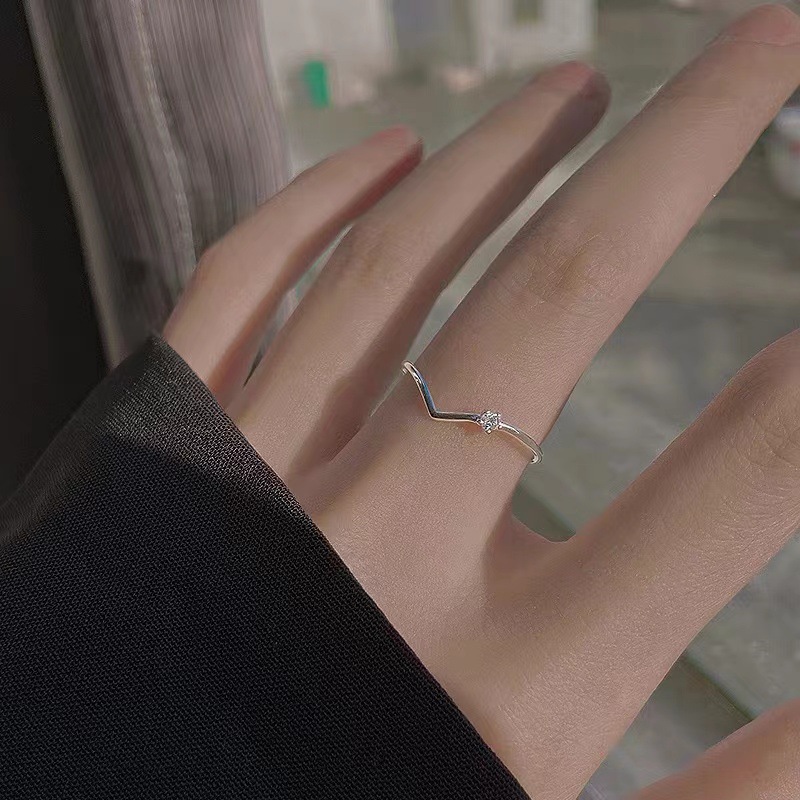 喜飾銀匠s925純銀v字指輪女性ファッション個性口リング軽豪華小衆デザイン感手飾り