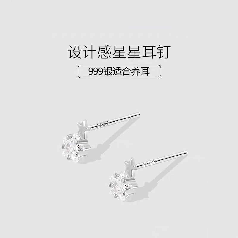 喜飾銀匠999純銀五角星ピアス2025新型小衆軽豪華感ジルコン星耳飾り代発