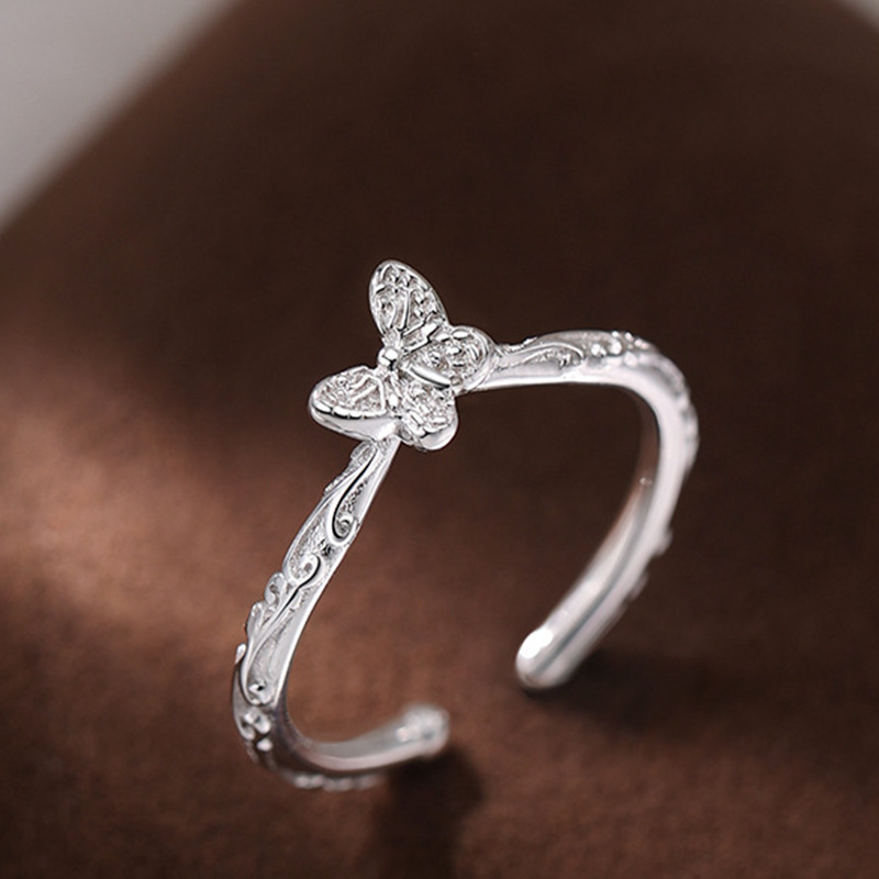 喜飾銀匠925純銀蝶指輪軽豪華小衆高級感食指戒女開口戒尾戒代発