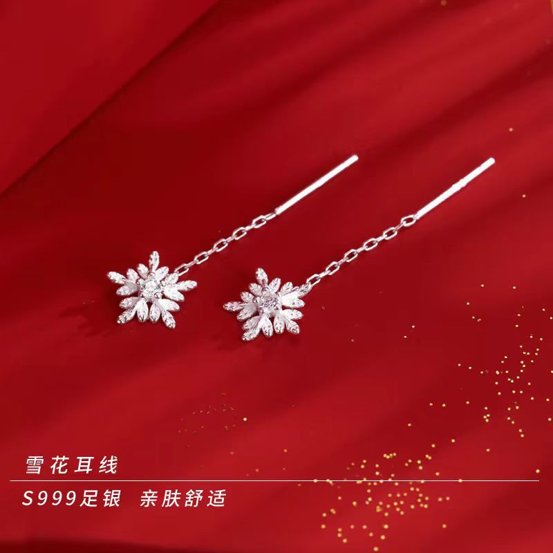 銀匠s999純銀の清新で甘い雪の花のフリンジの耳の線の女性の気品の軽い贅沢な冷たい風insの耳飾りを飾ります。