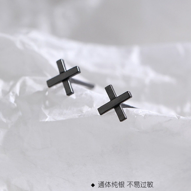 喜飾銀匠黒クロス925純銀ピアス女性2025年新作潮小衆シンプル耳飾り代発