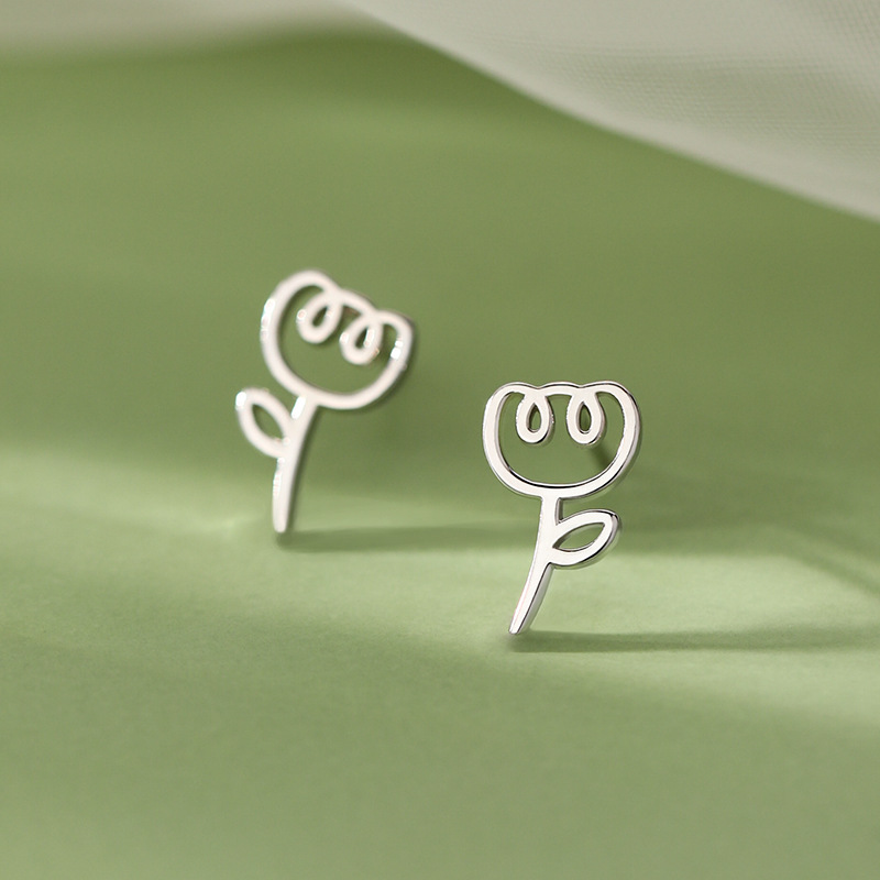 喜飾銀匠925純銀チューリップピアス女性養耳洞小衆デザイン高級感甘美耳飾り代発