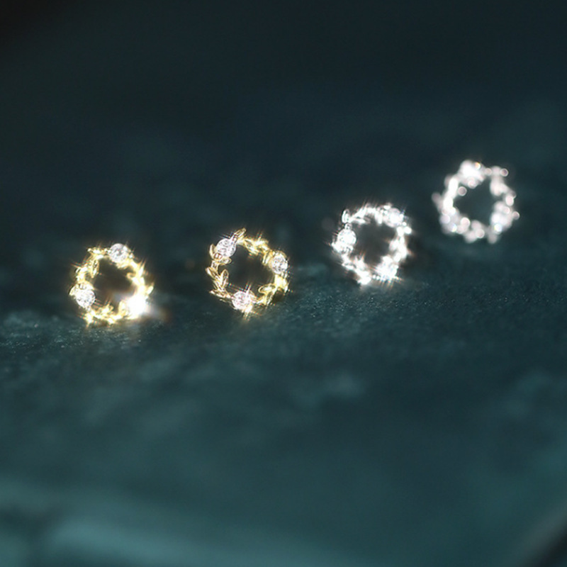 喜飾銀匠925純銀花輪ピアス2025年新型ファッション小型デザイン感ジルコン耳飾り代発